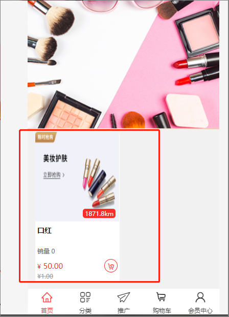 用户前端访问DIY的页面,根据用户定位,按照定位显示对应门店所在城市的附近推荐商品(首先按距离由近到远排序,然后再按商品ID从小到大排。不受商品排序控制即不按照排序数字大靠前显示)