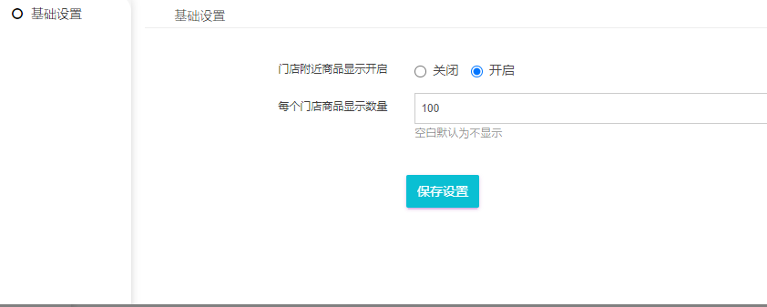 安装插件开启后,设置每个门店商品显示数量,设置后为门店最多可以推荐在附近商品中显示的商品量。